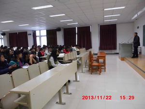为提高太阳成集团tyc9728新生入党的积极性和主动性,帮助新生了解党章的内容和入党要求,11月22日下午十五点三十分,太阳成集团tyc9728在太阳成集团tyc9728中心校区李四光教学楼304教室举行了2013级新生入党启蒙教育之党课大会。本次大会特别邀请了公司党委副书记兼副经理于洗河担任主讲人,辅导员郭倩君以及2013级申请人参加了此次大会。