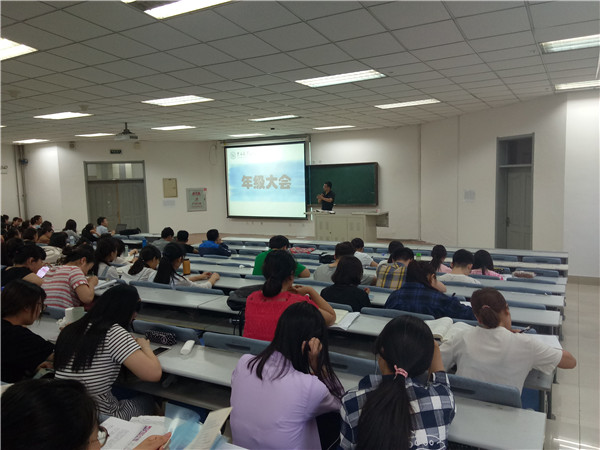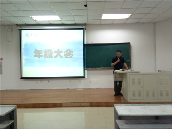 六月中旬,考试周将至,同学们都开始了紧张的考前复习。为了缓解同学们的复习压力,6月14日晚,2015级年级大会在新民校区第二教学楼2101教室准时召开。此次大会,让同学们的精神为之一振,既重申了考前复习的重要性,也给大家敲响了警钟。2015级辅导员苏国范、2015级全体员工出席了本次年级大会。