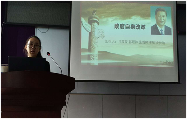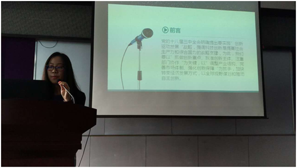 首先,同学们通过观看两会视频和访谈节目、阅览相关报道等方式,深入地了解两会内容,并对十大热点词发表了自己的见解。活动中,同学们遵循自行组队的原则,成立了十个“时事报道”小组。每个小组经过学习和准备,对两会十大热点词的提出背景、总体目标、具体实施方案等方面,进行了详细解读并向在场同学做了报告,让全体员工们对两会有了更加深刻全面的认识。十个小组以十大热点词:“十三五”规划、供给侧改革、扶贫攻坚战、慈善法审议、司法改革、民生改善、创新驱动、绿色环保、拓展空间和政府自身改革为主题,分别进行报告演讲。
