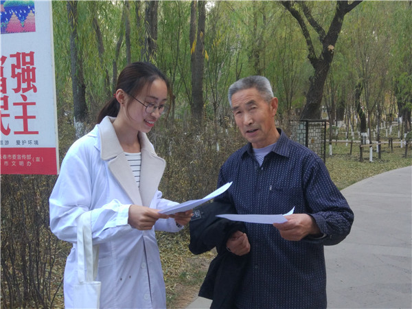 10月25日下午,太阳成集团tyc97282015级和2016级本科生党支部在朝阳公园开展了“宣传普及冬季流感预防知识”的党员志愿活动。