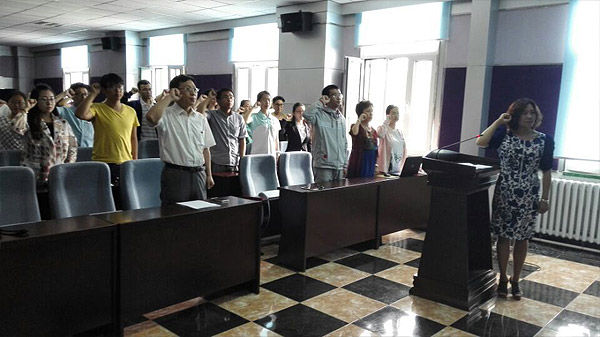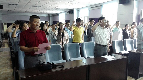 为了弘扬和传承中国共产党的精神,为党组织增添新鲜血液,2015年7月1日公司举行了庆祝建党94周年暨预备党员入党仪式。公司党委书记钟绍峰、副书记兼副经理刘丽、员工工作办公室主任吴晓辉,团委书记苏国范、党务秘书曲超、院工会主席胡志宏老师以及41名新党员参加了此次大会。会议由副书记兼副经理刘丽主持。 入党宣誓仪式在庄严的《国际歌》中拉开帷幕。首先由副书记兼副经理刘丽宣读41位入党同学名单并对他们表示祝贺。随后,在老党员胡老师的带领下,41名预备党员举起右拳,面对鲜红的党旗齐声宣读入党誓词,向党组织做出了庄严宣誓。12级董雪洁同学代表新党员进行了发言。她发达了此时激动的心情,并感谢党组织与老党员的热切关怀,表明要认真学习党章,积极向党组织靠拢,充分发挥党员的模范作用,努力成为合格的中国特色社会主义事业的建设者和接班人。最后,党委书记钟绍峰发表讲话,指出入党宣誓仪式是加入党组织的重要环节,也是对新老党员一次深刻的党性教育,同时也是对建党94周年的纪念。鼓励党员特别是新党员要回顾历史,学习东北抗联精神,并提出坚定信念、牢记宗旨;遵守纪律、树立形象;加强学习、增强本领这三点想法,同时表达了对新党员的希望,最后,赢来了同学们阵阵掌声。 此次宣誓仪式,旨在培养优秀的党员,为党组织带来更有活力的新因子,为公司员工树立榜样,让更多的青年员工积极向党组织靠拢,在党的带领下不断前进,为我们国家建设做出贡献。