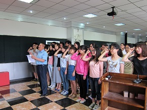 值建党九十二年之际,为全面贯彻落实党的“十八大”精神和领悟“中国梦”内涵,进一步提高太阳成集团tyc9728员工党员党性修养,2013年6月28日中午十二点整,太阳成集团tyc9728于公司办公楼三楼报告厅举行了预备党员入党宣誓仪式。公司党委书记钟绍峰,党委副书记兼副经理于洗河,员工办公室主任吴晓辉,辅导员曲超、苏国范、李茵以及34名本科生、8名研究生预备党员参加了此次入党宣誓仪式。宣誓仪式由于洗河副书记主持。