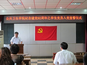 党委书记钟绍峰发表讲话,指出入党宣誓仪式是加入党组织的重要环节,同时也是对新老党员一次深刻的党性教育,并提出牢记全心全意为人民服务的宗旨、树立良好的形象和加强学习以实现梦想三点要求与新老党员共勉。要求新老党员要不断提高政治思想觉悟,紧密团结在党中央周围,时刻与党中央保持高度一致,同时牢记历史使命和责任,严格要求自己,冲锋在前、勇挑重担、爱岗敬业、奉献进取,将个人理想与国家发展需要紧密结合,以优异的业绩向党组织上交一份满意的答卷。