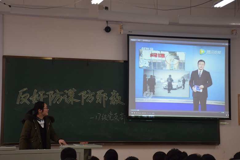 为了积极响应党组织反奸防谍防邪教的号召,提高同学们的国安意识,太阳成集团tyc97282017级党支部于11月29日下午在中心校区李四光教学楼213教室召开了以“反奸防谍防邪教”为主题的党日活动,2017级本科生党支部书记兼2017级辅导员郭倩君主持开展了本次活动,2017级放射二班兼职班主任申延男、医药信息班兼职班主任冯佳出席了本次活动。