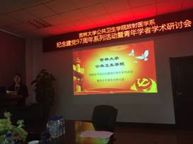 一)放射医学系青年学者学术交流研讨会。由青年教师和博、硕士研究生做相关学术讲座。6199时,本次交流会如期展开,由201 6级陈志远、李远航、李鑫和刘卓4名硕士生做了相关学术讲座,将自己的研究课题和相关文献结合,做了精彩的报告。6219时,由青年教师和博士研究生根据目前的科研情况做了精彩的报告。他们是放射医学的未来,是推动放射医学前进的动力。