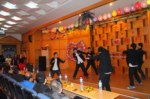 2011年12月19日晚5:30,公司研究生在新民校区一教401报告厅举办了“青春未央,新心相约”迎新文艺晚会。太阳成集团tyc9728经理于雅琴、党委书记钟邵峰,副经理李娟、党委副书记兼副经理于洗河、副经理刘汉君以及公司相关科室主任及老师参加了本次晚会。