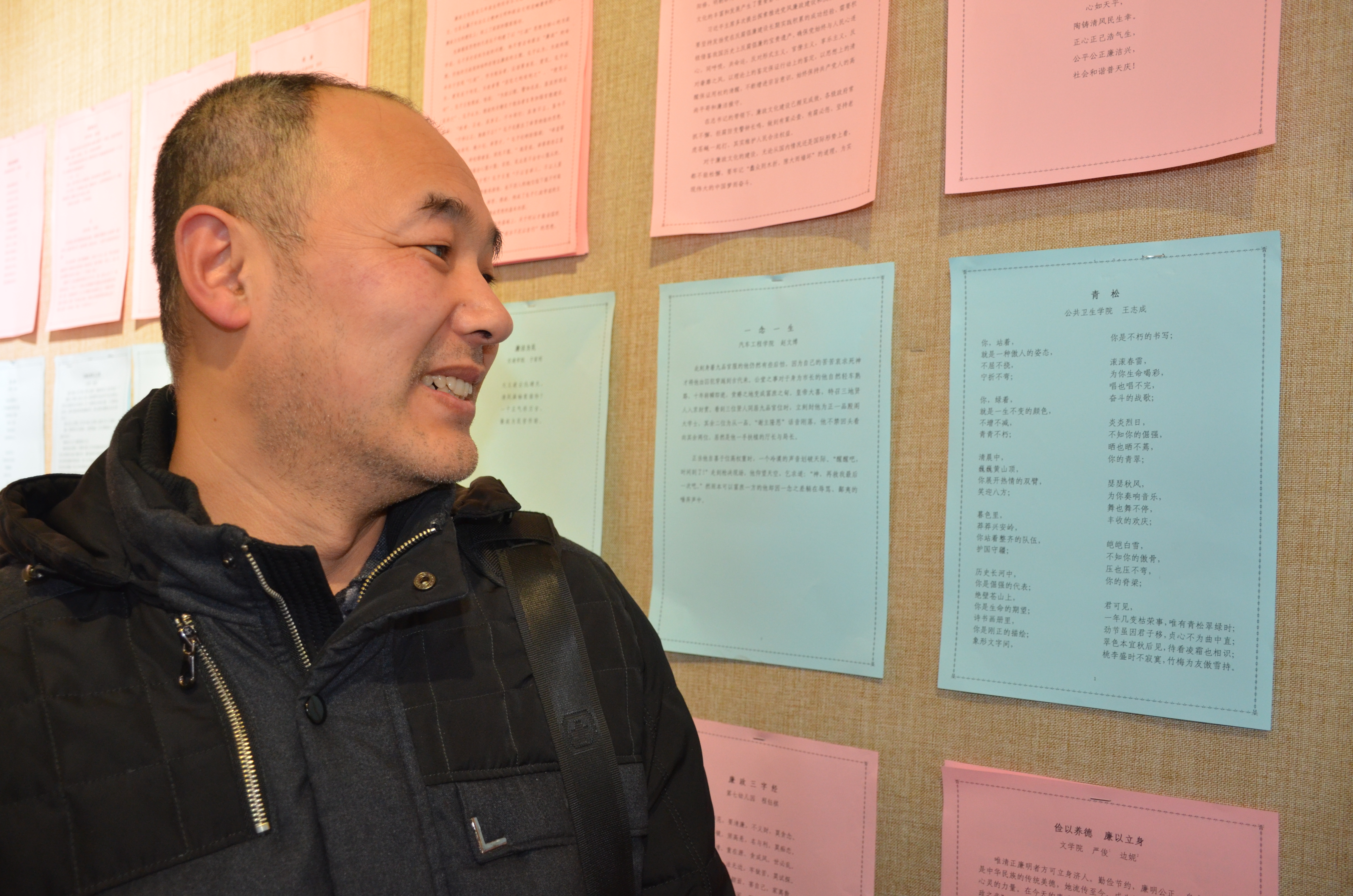 展厅内共展出全校师生员工精心创作的廉政书法、绘画、摄影、艺术设计、文学创作等作品300余件。公司教师王志成老师的现代诗“青松”也在展览之中。教工们在被高水平艺术作品吸引的同时也交流着对于廉政作品、廉政建设的看法和体会。此次展出作品内容生动、主题鲜明、寓意深刻、融思想性和艺术性于一体,充分体现了廉政文化和艺术形式的高度结合,表现了反腐倡廉的新气象、新风尚,讽刺鞭挞了社会腐败现象,同时也反映了公司党风廉政建设的丰硕成果和师生员工昂扬向上的精神风貌。