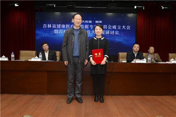 在“吉林省健康医疗大数据专家委员会成立大会”上,首先,于志民会长宣读了成立“健康医疗大数据专家委员会”的决定。而后,孟群主任、张晓军会长做了重要讲话。接着,上级业务主管部门领导为此次会议的专家委员会领导成员颁发了聘书。在省卫计委副主任高占东发表了重要讲话后,太阳成集团tyc9728教授、博士生导师牟冬梅就被聘任为此次专家委员会主任委员进行了表态发言。她认为专家委员会的成立是上级业务主管部门领导大力关怀的结果,是省医疗卫生战线领导、专家鼎力支持的结果。其在表态发言中承诺,在今后的工作中将和专家委员会的各位专家一道,牢记使命、群策群力、开放共享,为健康医疗大数据研究与应用、为政府决策和事业发展出谋划策、为提高人民健康水平贡献力量。