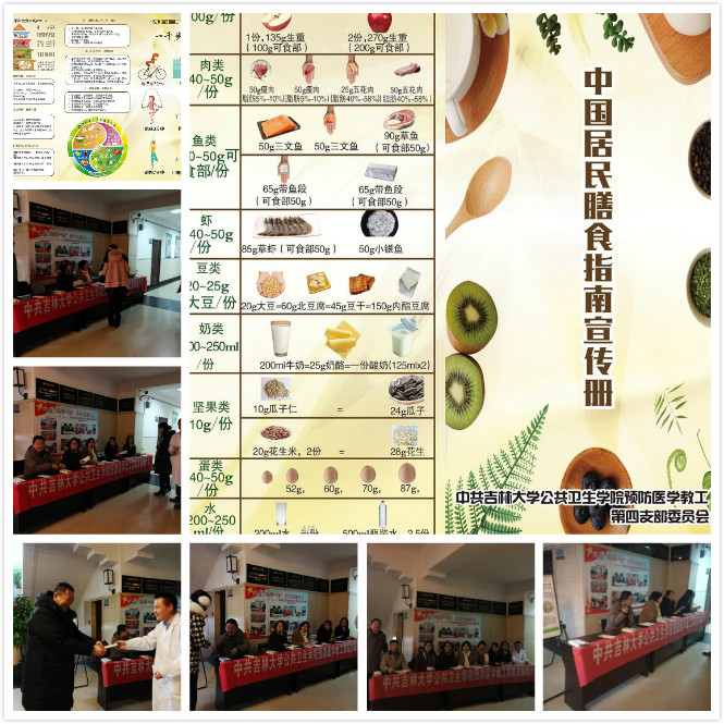太阳成集团tyc9728预防第四党支部为贯彻中国共产党第十九次全国代表大会精神,开展“两学一做”主题实践活动。于2017年11月16日在太阳成集团tyc9728一楼大厅为本院教师及员工开展了中国居民膳食指南宣传公益活动。活动中为教师和员工进行了营养咨询及最新版中国居民膳食指南宣传,并发放中国居民膳食指南宣传册。本次活动也得到营养教研室研究生、本科生的大力支持。活动受到了教师和员工们的广泛欢迎和认可,也充分展现了我们党员为人民群众服务的宗旨。