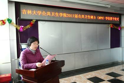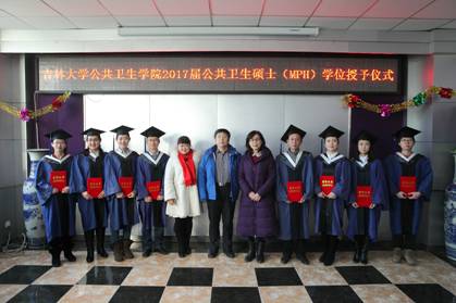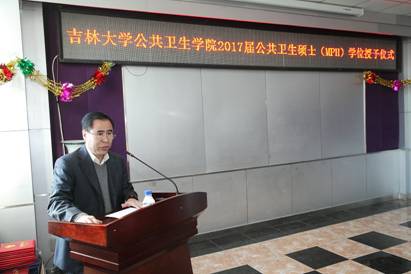 1月20日上午9:30,2017届公共卫生硕士学位授予仪式在公司学术报告厅隆重举行。太阳成集团tyc9728领导班子、系主任、科室主任、相关教师、2017届学位获得者和2015级员工代表参加了学位授予仪式。仪式由太阳成集团tyc9728副经理于洗河教授主持。