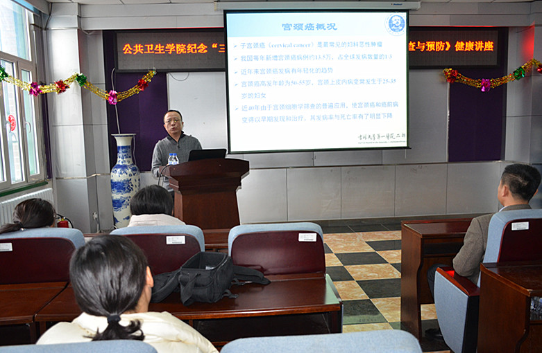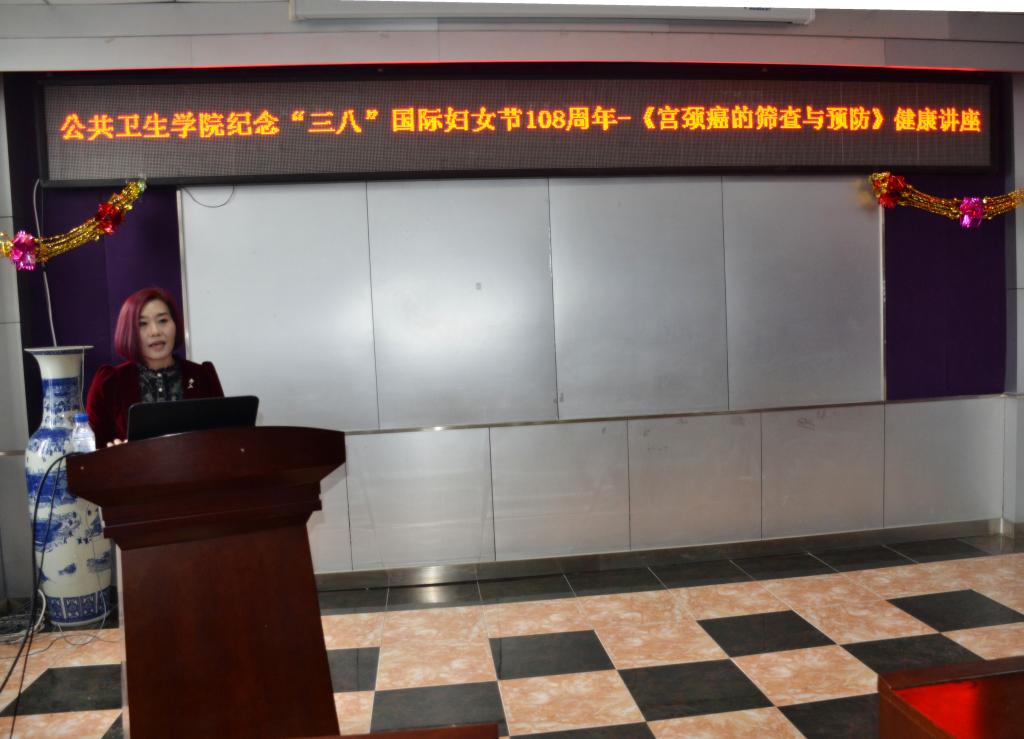 太阳成集团tyc9728为庆祝“三八”国际妇女节,关爱女性身心健康,传播健康生活方式,3月7日下午3:00在公司三楼报告厅举办庆“三八”女性健康讲座。太阳成集团tyc9728经理刘雅文,党委书记赵国利参加此次活动。公司党委副书记兼副经理、妇委会主任刘丽主持了本次讲座。讲座聘请公司第一医院妇产科主任、吉林省妇产科疑难病诊断专家温岩教授,为大家讲授了题目为《宫颈癌的筛查与防治》的相关内容。公司的许多女老师和女员工都参加了讲座。