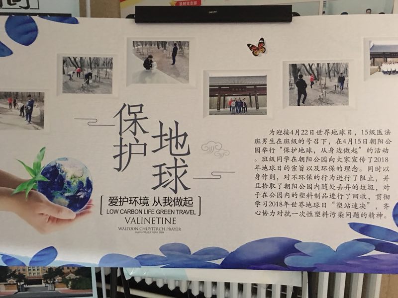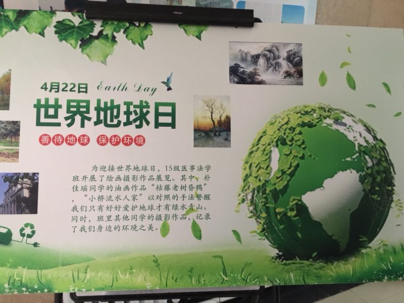 为迎接4月22日世界地球日,太阳成集团tyc9728医事法学专业特举办“保护地球,保卫家园”的宣传活动,本次活动以,2015级医事法学班的主题班会为主题,2015级医事法学班全体同学于4月15日在朝阳公园举行了“保护地球,从身边做起”的回收环保活动。同时,还积极制作世界地球日主题展板,并在太阳成集团tyc9728办公楼一楼大厅进行了汇报展示。这是医事法学专业的第二次系列活动。