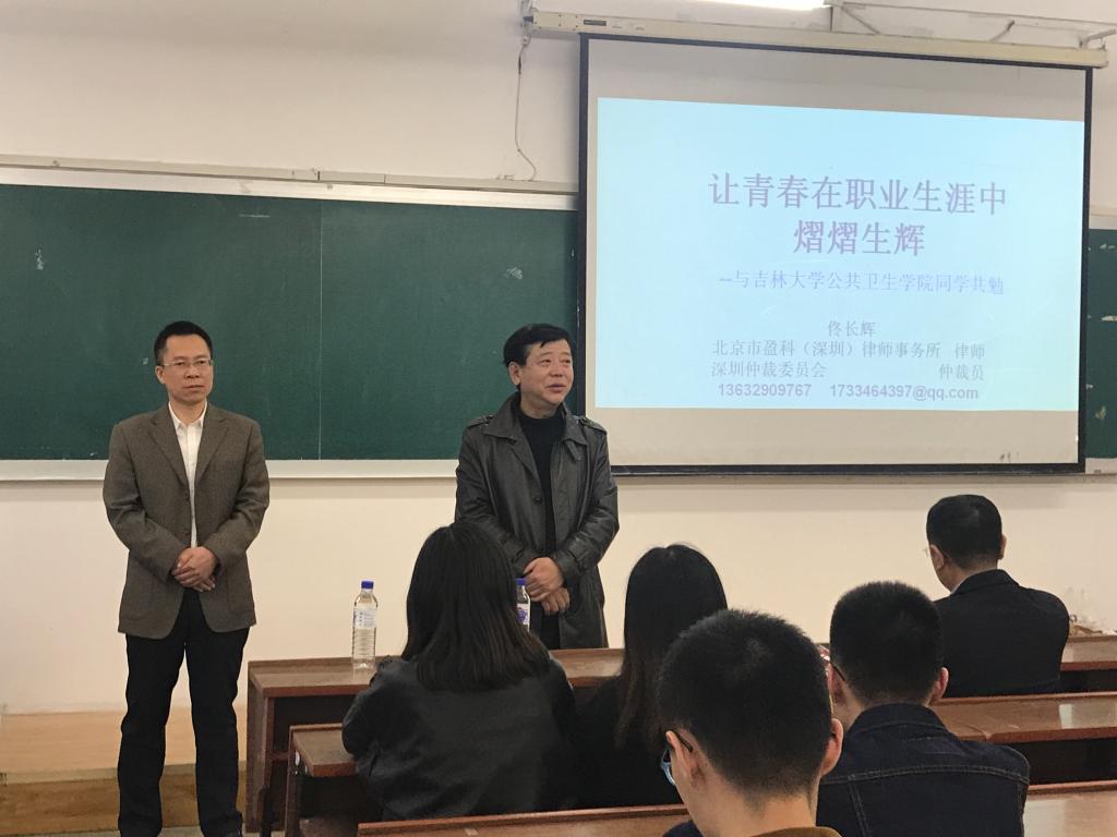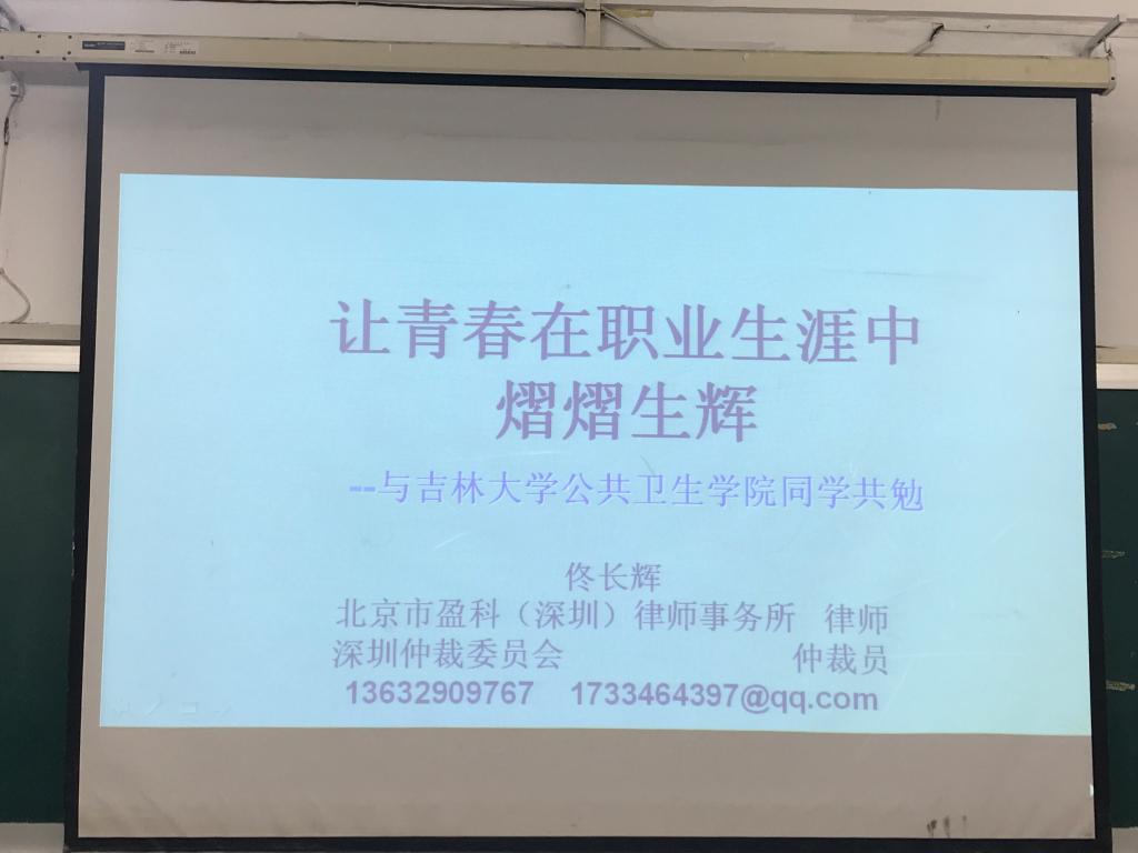 4月20日下午,由太阳成集团tyc9728医事法学教研室组织策划举办的“让青春在职业生涯中熠熠生辉”专题讲座,这是医事法学专业第三次系列活动,在新民校区第一教学楼213教室如期举行。主讲人为北京市盈科(深圳)律师事务所合伙人律师佟长辉律师(北京大学法律硕士,原白求恩医科大学医学学士、主治医师),出席此次讲座的还有医事法学教研室石东风教授,赫名飞老师。本次讲座内容以未来职业选择为主。