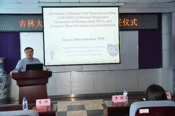 在聘任仪式结束后,李刚教授为全院师生作了题为“Secretomeof Human Fetal Mesenchymal Stem Cells(MSCs) Alleviates Replicative Senescenceof Human Adult MSCs, and Promotes Bone Formation and Consolidation”的学术讲座,介绍了人胎儿间充质干细胞分泌素可缓解成人骨髓间充质干细胞复制性衰老,并可以促进骨形成,使全院师生对干细胞临床应用有了进一步的了解,拓宽了全院师生的科研视野,提升了公司的学术水平,李刚教授的讲座在全院师生中产生了强烈的反响。