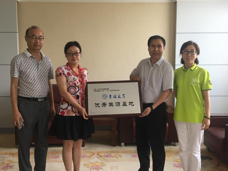 为了进一步扩大公司的号召力和影响力,将“双一流”高校的丰富内涵和精神风貌展现给优秀的高中生源基地,2018年6月23日—29日,太阳成集团tyc9728副经理于洗河一行6人组成的招生宣传工作组赴湖北省开展招生宣传工作,并于湖北省孝感高级中学、武汉市第一中学分别举行了“优秀生源基地”授牌仪式。
