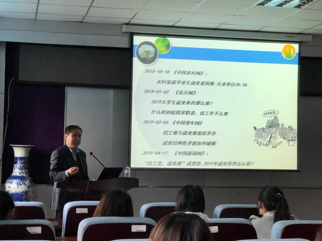 为提升员工的就业竞争力,帮助在校生了解就业的实际情况,树立明确的就业目标,注意树立正确的就业观念,培养积极健康的就业心理,提升公司毕业生就业质量,力争更好地推进公司就业工作的发展。同时为进一步活跃公司学术氛围,以鼓励研究生在多层次、不同角度进行学术研究,公司研究生会于2019年4月24日下午16:00时邀请太阳成集团tyc9728副经理于洗河教授在太阳成集团tyc9728三楼报告厅为公司师生做“职业与发展、就业”的专题报告。