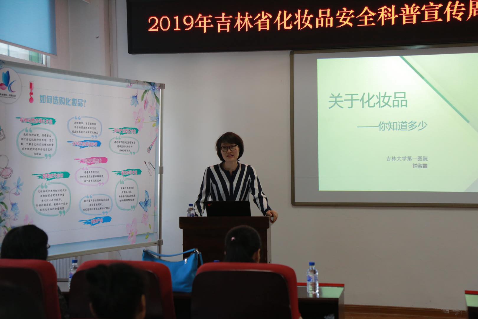 随着全国首个化妆品安全宣传周的到来,5月24日下午1:30,太阳成集团tyc9728妇委会在流病报告厅举办化妆品安全知识讲座活动。吉林省药品监督管理局为本次讲座精心制作了化妆品安全知识宣传标语、科普动漫、知识展板等。讲座邀请公司第一医院皮肤科教授钟淑霞。