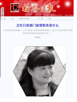 疫情就是命令,防控就是责任。公司医事法学教研室全体教师在系主任、中国卫生法学会副会长杨淑娟教授带领下,响应号召,积极行动起来。杨淑娟教授和于娟副教授率先在《检察日报》上发表了《卫生行政部门监督检查的职责与履行要求》和《如何开展传染病预防》专题文章,在疫情防控的关键时刻,向全校师生和社会公众提供权威的传染病防治知识,解读疫情防控的法律措施。同时,教研室老师们围绕当前社会公众普遍关心的卫生行政部门职责、传染病防护、疫情防控中的医护人员保护等动态热点问题,以交叉学科特有的专业视角,全方位、多角度,精准发力,在公司主页、微信公众号、传统报刊等媒体,进行疫情防控法治应急科普系列推送,取得了良好的社会效果。体现了公卫法律人在疫情面前的担当。