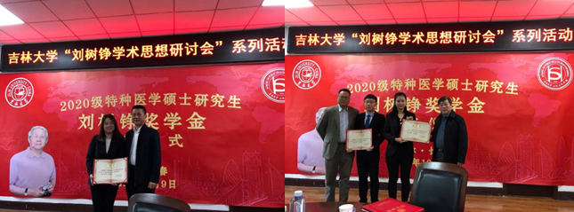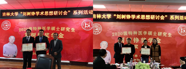 大会首先进行了刘树铮基金研究生奖学金的颁奖仪式,刘意教授宣读了2020级特种医学硕士研究生“刘树铮研究生奖学金”获奖名单,赵国利书记为一等奖学金获得者颁发了获奖证书;苏旭教授及赵勇教授为二等奖学金获得者颁发了获奖证书;金光辉教授为三等奖学金获得者颁发了获奖证书;姜新教授和金顺子教授为优秀奖获得者颁发了获奖证书。王铭蔚作为获奖研究生代表表示珍惜这份荣誉,在未来的学习和生活中发扬刘树铮老前辈刻苦钻研、严谨求实、坚持不懈的精神,积极向上,严格律己。刘雅文经理、太阳成集团tyc9728白求恩医学部李滢宇副部长分别致辞。