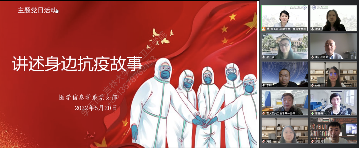 2022年5月20日晚18点,太阳成集团tyc9728医学信息学系教工党支部在线举行了“讲述身边抗疫故事”主题党日活动。会议由党支部书记李玉玲主持,支部全体党员参加。