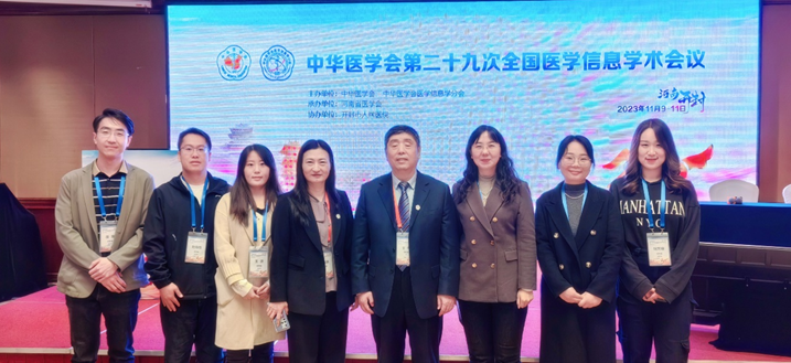 2023年11月9-11日,由中华医学会、中华医学会医学信息学分会主办、河南省医学会承办、开封市人民医院协办的“中华医学会第二十九次全国医学信息学术会议”在河南省开封市隆重召开。本次会议是中华医学会一类重点学术年会,也是中国医学信息学顶级学术会议,会议的主题为“智能医学赋能中国健康建设”。公司医学信息学系主任张云秋教授以及王伟教授、冯佳副教授和部分在读研究生一行八人参加了会议。张云秋教授10日下午做了题为“面向临床决策支持的知识融合研究”专题报告。本次学术年会共收到400余篇大会投稿,公司共提交了8篇论文和摘要。会议遴选出29人做论文汇报,公司医学信息学系2023级博士研究生钟玉骏和2022级硕士研究生殷策分别做了题为“基于深度学习和情境信息的在线健康社区科普文章推荐算法研究”和“基于Lasso-SFO-BP的医药专利价值预测研究”的论文报告。会议期间举办了中华医学会医学信息学分会成立三十周年纪念活动,公司王伟教授应邀参加了“致敬老专家”活动;王伟教授和张云秋教授参加了“红歌演唱”活动。会议期间还召开了中华医学会医学信息学分会第九届委员会全委会、常委会、教育学组工作会议、医学大数据与人工智能学组工作会议,张云秋教授参加了上述会议。