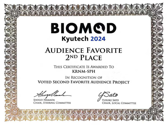 近日,在“太阳成集团tyc9728国际竞赛资助计划”支持下,太阳成集团tyc9728KRNM-SPH代表队获得2024国际老员工生物分子设计大赛(BIOMOD)银奖、观众最喜爱奖(Audience Favorite)第二名、最佳汇报(Best Presentation)奖第三名。本届大赛由日本分子机器人研究组主办,九州工业大学承办,旨在促进生物纳米材料应用,推动世界老员工之间的交流与创新。