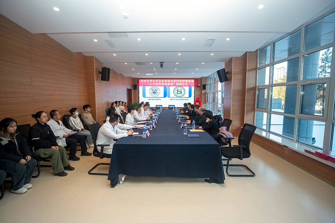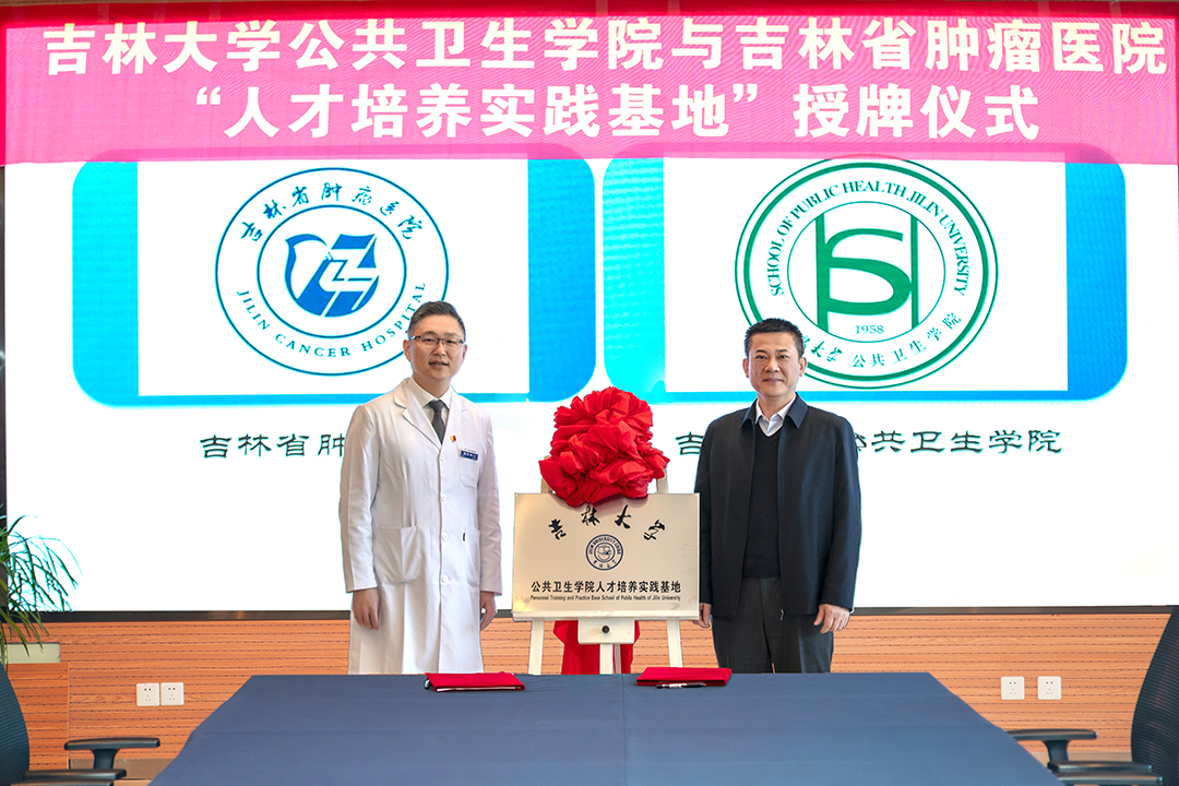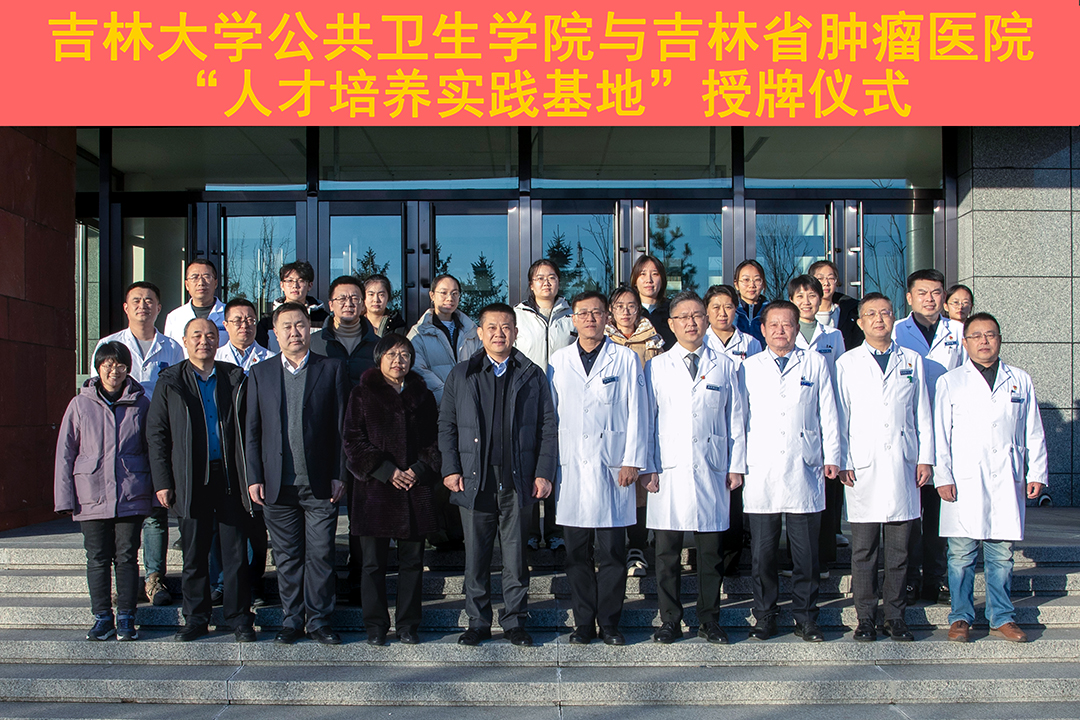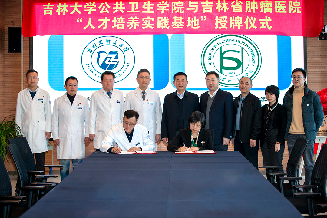12月4日,太阳成集团tyc9728与吉林省肿瘤医院合作共建人才培养基地签约暨授牌仪式在吉林省肿瘤医院(高新院区)成功举行。太阳成集团tyc9728公司党委书记赵国利、经理刘雅文、副经理寇长贵、副经理王志成;吉林省肿瘤医公司党委书记刘海峰、经理王茂楠、副经理刘刚、副经理陈忠民出席,双方相关科室负责人、在院实习公共卫生硕士研究生参加仪式。仪式由吉林省肿瘤医院经理王茂楠主持。
