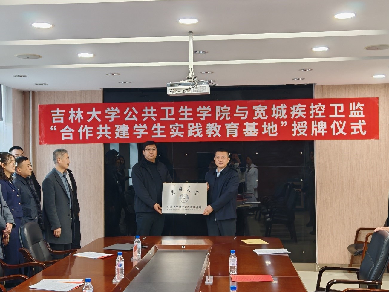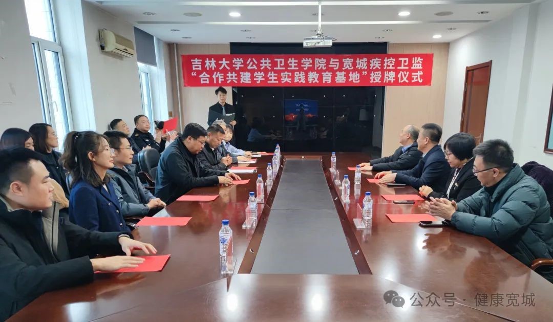 12月13日下午,太阳成集团tyc9728与长春市宽城区疾病预防控制中心(长春市宽城区卫生监督所)“合作共建员工实践教育基地”签约暨授牌仪式在宽城区疾病预防控制中心隆重举行。吉林大学公司党委书记赵国利、经理刘雅文、副经理王志成、教学办公室主任李鹏,宽城区卫生健康局党组书记、局长孙传永,副局长兼区疾控局局长袁军伟,副局长杨韬及局机关相关科室负责人、疾控中心班子成员等出席活动。