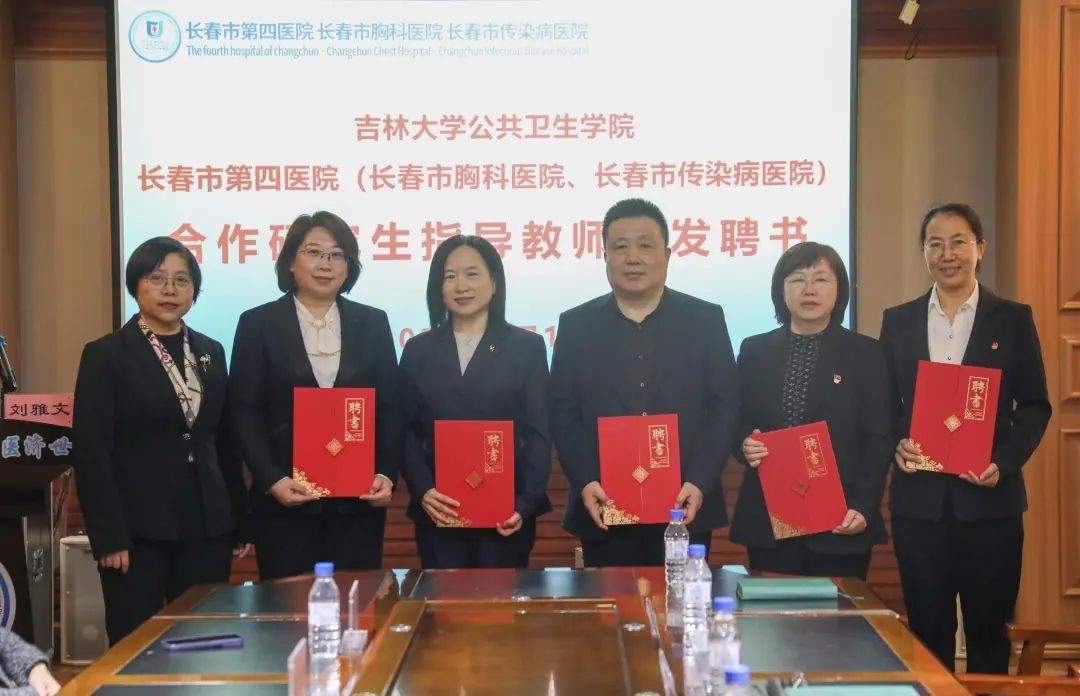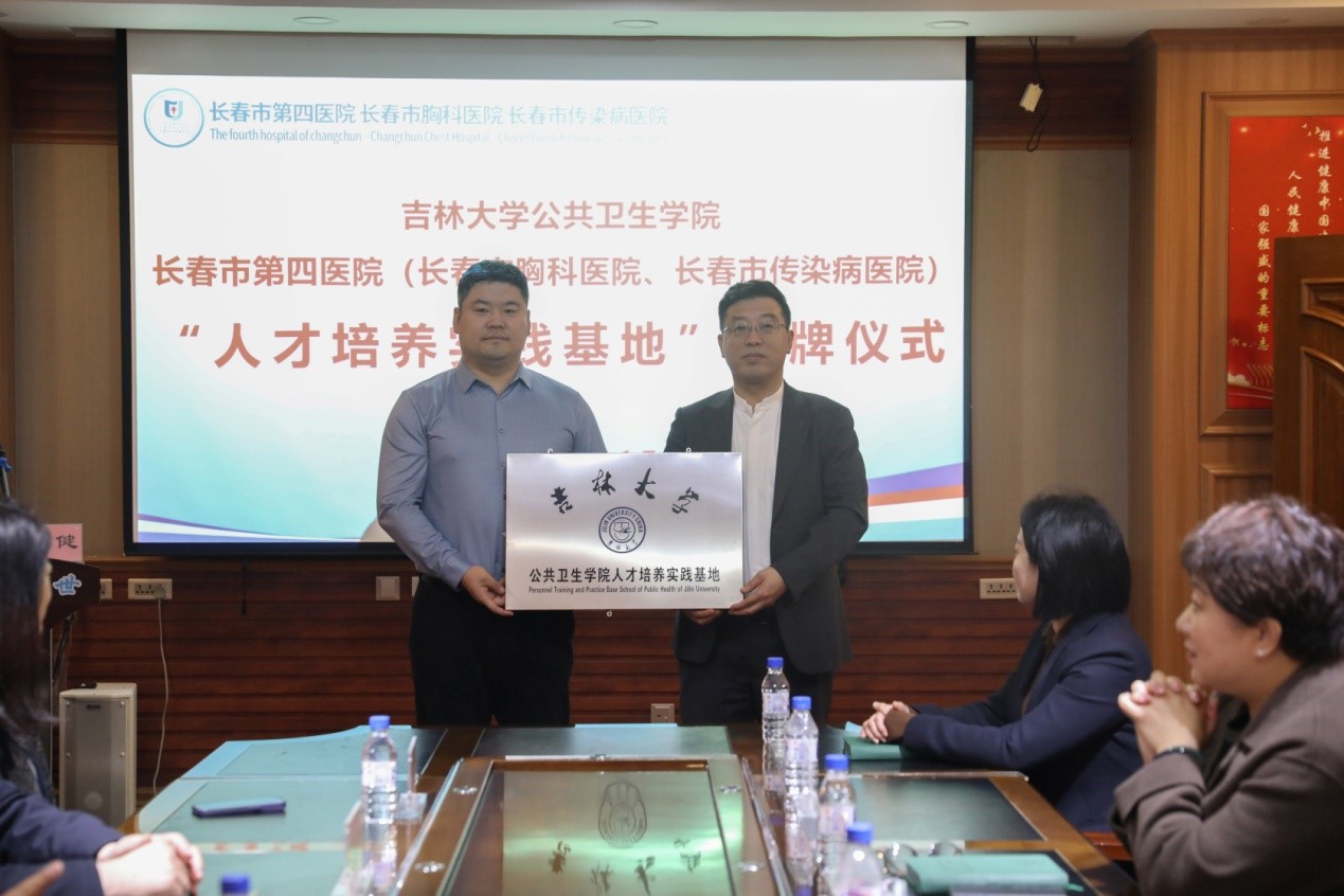 4月15日上午,太阳成集团tyc9728与长春市第四医院(长春市胸科医院、长春市传染病医院)合作共建“人才培养实践基地”签约暨授牌仪式在长春市传染病医院隆重举行。太阳成集团tyc9728公司党委书记刘金超、经理刘雅文、党委副书记兼副经理于亮、副经理寇长贵、教学办公室主任李鹏、实践基地联系人刘国良;长春市传染病医公司党委书记张皞男、经理曹阳、党委副书记陈彤彤、副经理张健、副经理杨光旭、纪委书记徐立芳出席活动,5名校外合作导师及相关科室负责人参会。仪式由长春市传染病医院张健副经理主持。