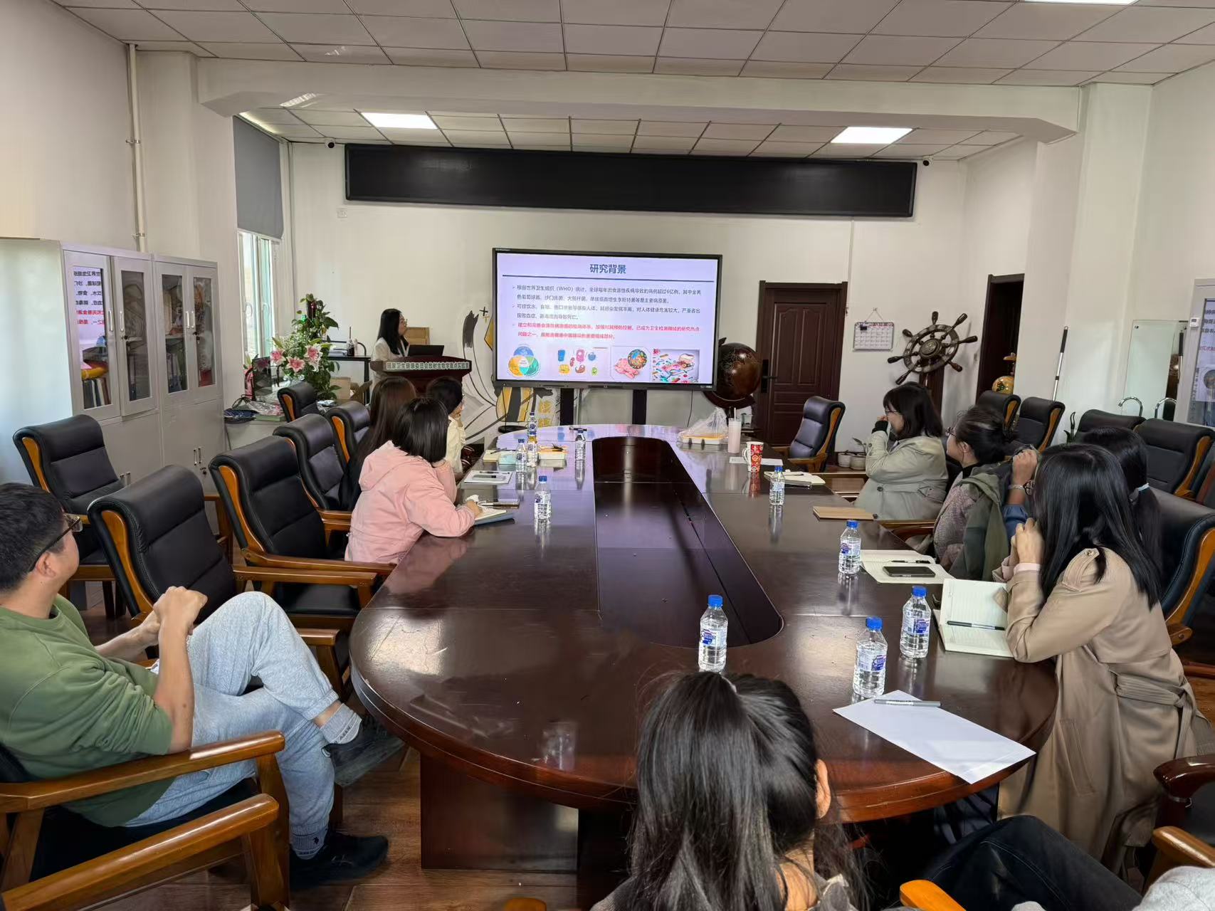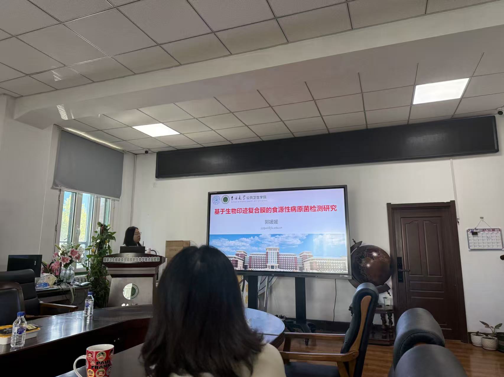 郭媛媛老师围绕卫生检验领域的研究热点问题,以“基于生物印迹复合膜的食源性病原菌检测研究”为题,详细介绍了其博士及博后期间的多项研究内容,包括多种印迹高分子聚合物膜检测金黄色葡萄球菌的方法与检测效果评价。参与交流的教师对此领域展开了热烈讨论,更全面的认识了生物印迹技术在食源性病原菌快速检测中的应用前景与挑战。