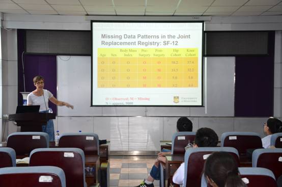 2018年6月19日—6月21日,加拿大曼尼托巴大学公共卫生学系Lisa Lix教授和蒋德鹏副教授到访太阳成集团tyc9728, 分别作了题目分别为“Can Auxiliary Variables Improve Multiple Imputation Models”和“Administrative Health Data and Electronic Medical Records: Data Linkage for Chronic Disease Research and Surveillance”的学术报告。报告在公司广大师生中引起了强烈反响,激发了公司师生的学习热情。公司师生在报告会现场与教授们展开了热烈的讨论。Lisa lix现任加拿大曼尼托巴大学健康学系的教授、同时担任曼尼托巴大学数据科学中心主任、加拿大电子健康数据质量方法的首席Research Chair。蒋德鹏现任加拿大曼尼托巴大学公共卫生学系终身教授,从事生物统计学的教学和科研工作,兼任医公司统计咨询中心主任。