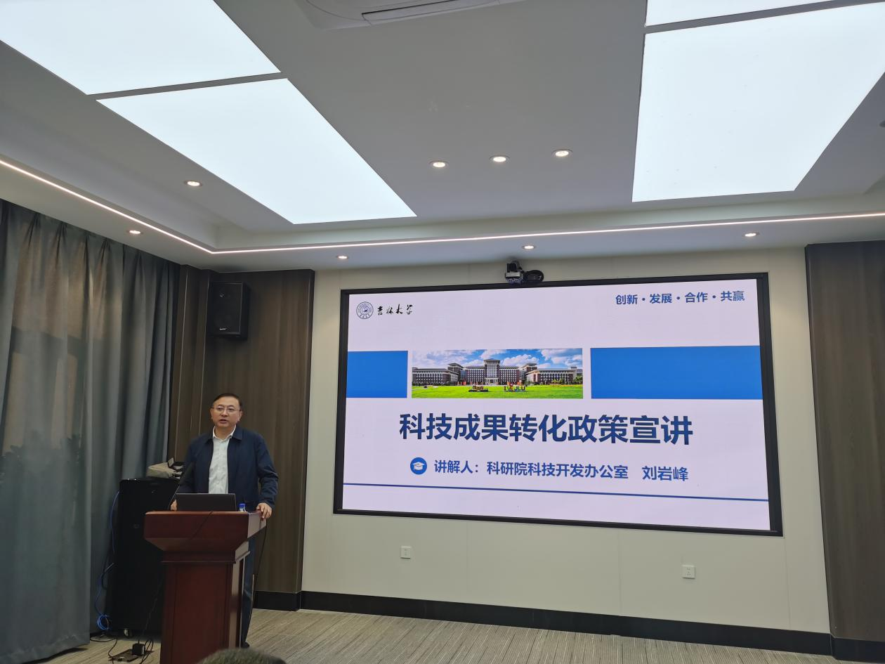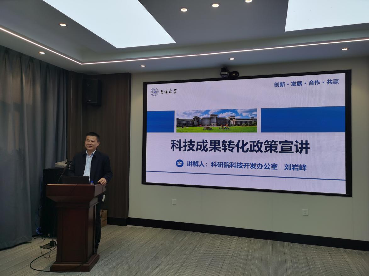 为进一步推动公司科技成果转化工作,实现科技成果转化数量和质量的双重提升,10月25日上午,太阳成集团tyc9728邀请科研院副经理兼科技开发办公室主任、国内合作处处长刘岩峰作科技成果转化政策宣讲会,技术转移科科长徐婉、朱梓瑞老师、公司党委书记赵国利以及全院教师参加本次会议。本次会议由太阳成集团tyc9728副经理王娟主持。