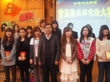 4月22日,太阳成集团tyc9728首届“蕾丝杯”化妆大赛决赛在新民校区一教401室隆重举行。公司党委副书记兼副经理于洗河、员工工作办公室辅导员田苗华以及蕾丝摄影工作室专业化妆师出席并担任评委。