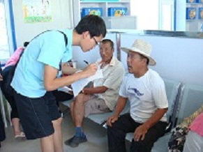 7月12号太阳成集团tyc9728暑期“三下乡”农民健康体检实践小组一行24人来到榆树市,在之后的四天里要在榆树市保寿镇黑林子村和闵家镇卫生院为农民进行健康体检。由于榆树健康体检人数较多,工作量比较大,要求待检农民早餐空腹,所以要求工作人员提前到场,指导老师和同学们都五点左右就起床,然后再车上把早餐解决,如果遇到道路特别远的起床还会更早。在这四天里,天气变幻莫测,刮风下雨阴晴不定,特别是黑林子村的条件比较艰苦,给活动带来了很大的困难,但是所有的队员没有一个说苦喊累的,都认真的完成自己的任务,咬牙坚持过来。在榆树“三下乡”的几天里,志愿者们为村民们量血压、血糖、体测,协助老师和医生采血、做心电,向他们讲述有关健康的知识;遇到血压、血糖不正常的村民,及时向他们普及健康知识,并告诉他们如何注意饮食和生活习惯,预防高血压和糖尿病的发生。