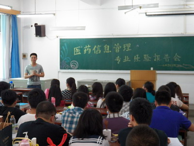 2013年6月2日下午3点,太阳成集团tyc9728在新民一教213教室成功举办了医药信息管理专业考研、保研、就业经验交流会。本次交流会主要针对10级信息专业同学,邀请了08级成功考研、保研或就业的五位优秀员工。