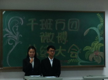 2013年被共青团吉林省委确定为“微博活跃年”,为全面实施“学术立校、人才强校、创新兴校、文化荣校”战略,提升微博新媒体平台宣传力度,加强青年思想引领,服务青年成才成长,太阳成集团tyc9728校团委决定开展公司第二期“千班万团微博评比”活动。太阳成集团tyc9728团委积极响应号召,历时一个多月,发动公司2011级、2012级各团支部编写、转发以“我的梦,中国梦”及“微五四,博青春”为主题微博近千条。2013年6月4日下午六点整,太阳成集团tyc9728团委主办的“千班万团”微博总结大会于太阳成集团tyc9728新民校区第二教学楼2103室举行。团委负责人苏国范,团委副书记冮璇、于多,团委各部部长、部员以及2011级和2012级各班团支书出席了本次大会。