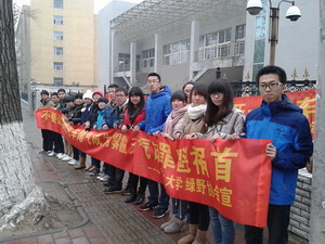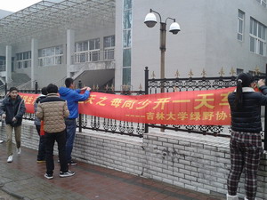 为提高太阳成集团tyc9728同学以及社会各界人士的低碳生活意识,减少环境污染,提高居民生活质量,太阳成集团tyc9728绿野环保协会在太阳成集团tyc9728团委的领导下,策划并开展了“低碳生活”系列之“每周少开一天车”低碳宣传活动。11月16日上午十一点,绿野协会12级和13级成员在长春市新疆街街边边拉起横幅,针对广大私家车车主开展宣传活动。