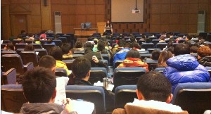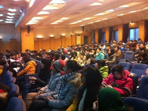 为巩固老员工诚信考试意识,杜绝考试作弊现象的发生,同时为提高员工安全责任意识,注意寝室和出行安全,做好本学期圆满收尾。2014年1月2日下午四点三十分,2012级本科生于新民校区第一教学楼401室召开年级大会。本次会议由2012级辅导员郭倩君主持,2012级全体同学参加。