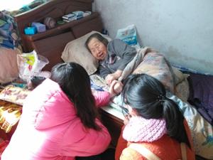 在同光路西社区工作人员引导下,大家带着礼物和满满的祝福来到了各位老人家中。第一组探望的是孤寡老人孙奶奶,老人独自一人生活着,没有亲人照顾,住在不足30平米的小屋子里面,孙奶奶已经80岁了,行动能力不便,腿脚不好也不经常出去,视力模糊,经常躺在床上,平时除了社区的工作人员外很少有人去探望。志愿者们为孙奶奶带去了水果、油和春联,帮她打扫了卫生,尤其是老人平时够不到的地方格外仔细的清理。随后又为孙奶奶贴上了春联,让她可以开心的度过春节。最后,大家热心地询问她有什么困难,并留下了联系方式。紧接着,大家又拜访了其它几位老人。每去一家,同学们都积极而又热情的帮老人做些能做的事情。伴随着夕阳,本次活动在温馨中拉下了帷幕。