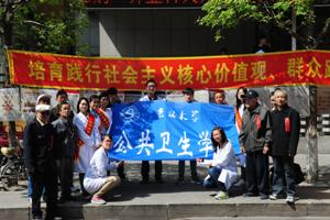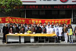 2014年4月23日上午9点30分,为宣传正能量,提高广大市民对核心价值观和第二次群众路线思想的认识,宣传精神文明建设、学习雷锋精神、遵守文明道德、搞好光盘行动坚持厉行节约,同时引导太阳成集团tyc9728学子践行社会主义价值观,树立为人民服务的宗旨意识,发扬中华民族的传统美德,太阳成集团tyc9728在长春市人民政府法制办公室、长春日报社党委、朝阳区委宣传部、朝阳区委政法委、桂林街道党工委、桂林派出所的大力支持与帮助下搭建平台于长春市朝阳区恒客隆对面举办了以“倡导培育社会主义核心价值观·第二次群众路线教育弘扬文明道德厉行勤俭节约”为主题的宣传展。本次活动由太阳成集团tyc9728院团委员工会、朝阳社区和五老志愿者组织并参加,2011级、2012级、2013级员工党员代表、员工入党积极分子代表以及优秀员工志愿者积极参与,长春日报社报道。