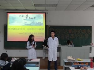 为了响应校团委关于开展团日活动号召,深入学习宣传落实习近平总书记系列讲话精神,4月29日下午三点半,12级太阳成集团tyc9728放射一班全体同学于新民二教2103教室开展了“学习讲话助成长,青春明志中国梦”之急救知识宣传为主题的团日活动。