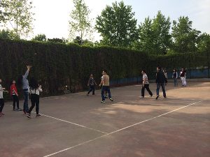 先是由体育委员组织了一场足球比赛,在赛场上大家你追我赶,巾帼不让须眉,女生代表队更是连进两球。在随后的一个半小时的时间里,体委又组织同学们进行了多项体育运动,如丢沙包、老鹰抓小鸡等儿时的运动小项目更是深得大家的热爱,活动气氛异常热烈。