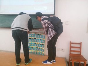 就课堂纪律问题,任课老师首先向同学们提出了几点要求,包括上课不许玩手机,要认真听讲,积极与老师互动等。同学们认真聆听,之后各班班长拿出了提前准备好的手机袋,同学们按照学号顺序依次上前将手机放入标有学号和姓名的手机袋中,再由各班班长将手机袋挂在黑板上,待下课后返还手机。