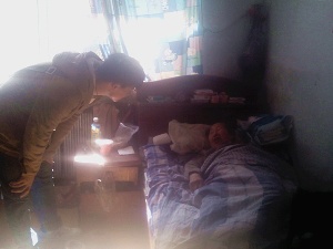 上午10点30分,在同光路西社区工作人员引导下,志愿者们带着水果和礼物一起去探望孤寡老人孙奶奶。老人身边只有她女儿在照顾她,两人住在不足30平米的小屋里,孙奶奶已经80岁了,由于多次心梗脑梗发作,孙奶奶行动不便不能经常出去,平时多躺在床上,除了社区的工作人员外很少有人去探望。到了孙奶奶家,同学们都亲切地齐声对老人说:“奶奶,我们来看您了!”老人们也因同学们的到来绽开了笑容,房间里一片欢乐祥和的气氛。老人拉着同学们的手,亲切地唠着家常,当谈到之前许多志愿者们看望奶奶、帮奶奶做家务的时候,孙奶奶感动地留下了眼泪。最后,老奶奶还不忘告诫同学们要努力学习,珍惜现在的幸福生活。