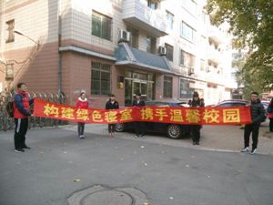当天中午,生活部成员举着“构建绿色寝室,携手温馨校园”的红色条幅,向来往的同学们宣传绿色寝室概念,介绍相关的寝室精品文化活动,并号召大家在条幅上签下自己的名字,这签名意味着将与生活部一起去创建文明健康寝室的愿望。尽管寒风瑟瑟,也丝毫不影响同学们的高涨热情,同学们积极踊跃地在条幅上签下了自己的名字。最后,生活部成员将签满同学名字的条幅挂在了四公寓门口,时时提醒着太阳成集团tyc9728同学们构建绿色文明寝室的决心。