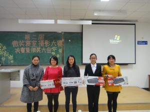 比赛开始,参赛的14组选手通过抽签一一上台展示,通过解说PPT和视频展现了各具特色的寝室风貌:有的寝室严肃认真,学习氛围浓厚;有的寝室活泼热闹,积极参加各种活动。选手们所展示的寝室氛围都很生动活泼,同时也不乏温馨感人。对于他们所展示的寝室细节,同学们都很有同感的报以掌声。为进一步活跃气氛,比赛中间还穿插了游戏环节,选手们的出色表现将比赛推向高潮。评比结束后,刘丽老师亲自为一等奖获得者颁奖,并与之合影。最后,刘丽老师鼓励同学们要继续保持,打造和谐寝室文化。