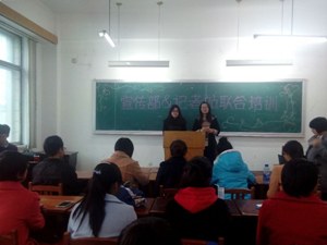 下午2点,2014级新生部员们齐齐来到指定教室。本次培训由记者站站长和宣传部部长主持。培训开始前,每位同学都做了简单的自我介绍,活动现场气氛融洽。记者站部员们用主要向大家介绍了文稿书写的格式、内容、注意事项和照片的合格标准,内容细致,讲解到位。之后宣传部的部员们轮番上阵,讲解了PPT的制作、视频的制作和板报的设计,内容丰富,生动有趣。培训过程中2014级新生均全神贯注,并仔细做了笔记。最后活动在学长、学姐的祝福中圆满结束。