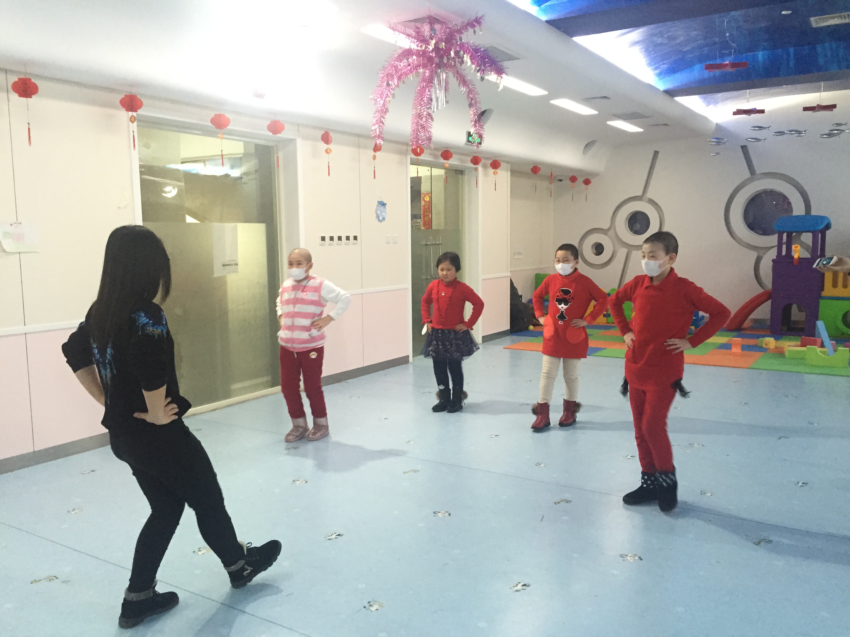 志愿者本次来到的这间病房,最小的患儿还不到四岁。活动的一开始,志愿者们的“突然造访”,使白血病患儿们显得有些紧张和拘束。面对这些陌生的大哥哥、大姐姐,孩子们有些不知所措。然而,当志愿者们为病房里的宝贝们献上精心准备的节目后,现场气氛逐渐破冰,孩子们慢慢变得活跃起来。通过一些心理素拓的小游戏,在志愿者的真诚沟通和不断努力下,白血病患儿终于逐渐敞开心扉,与志愿者们愉快地玩耍了起来。