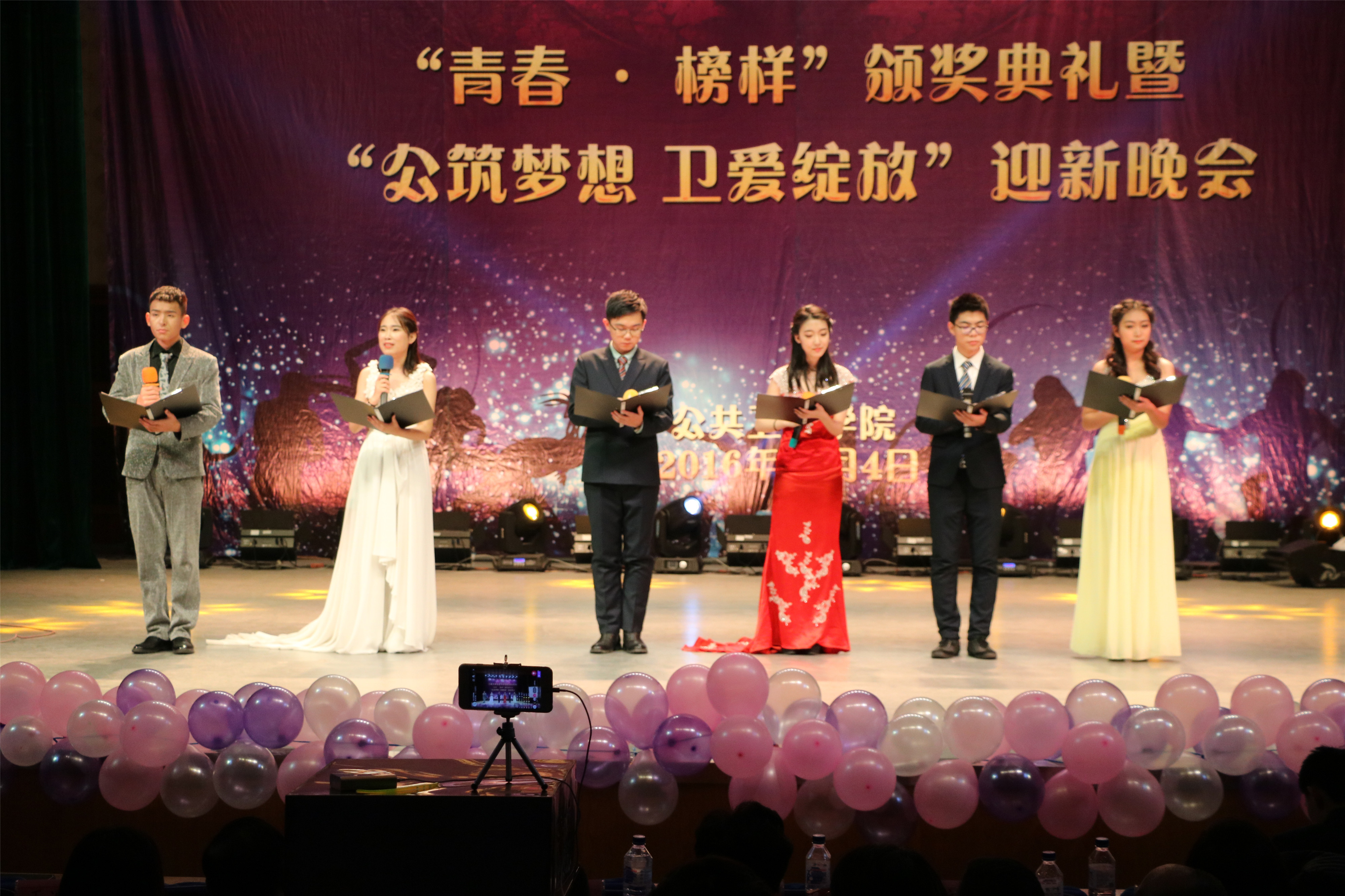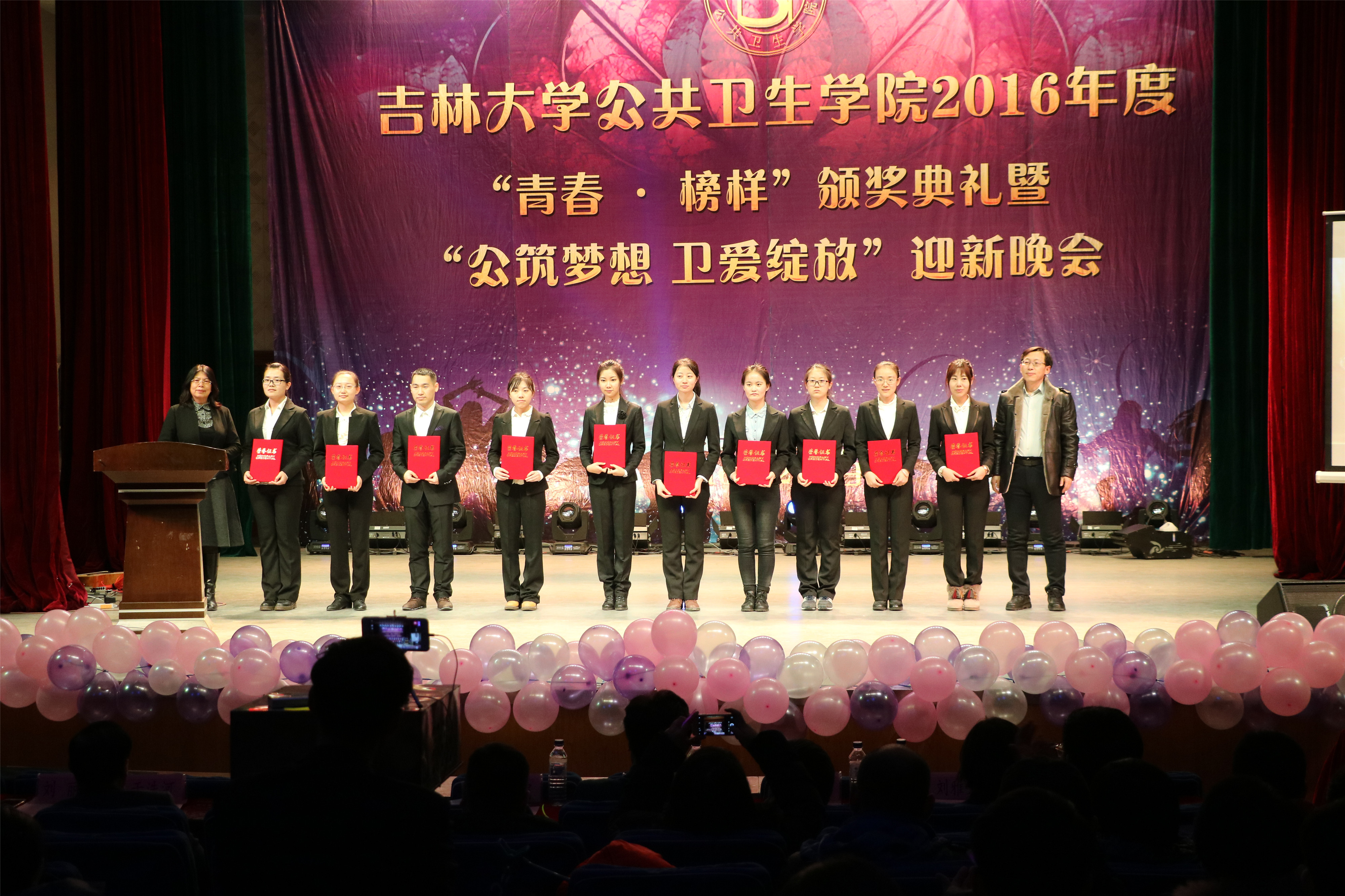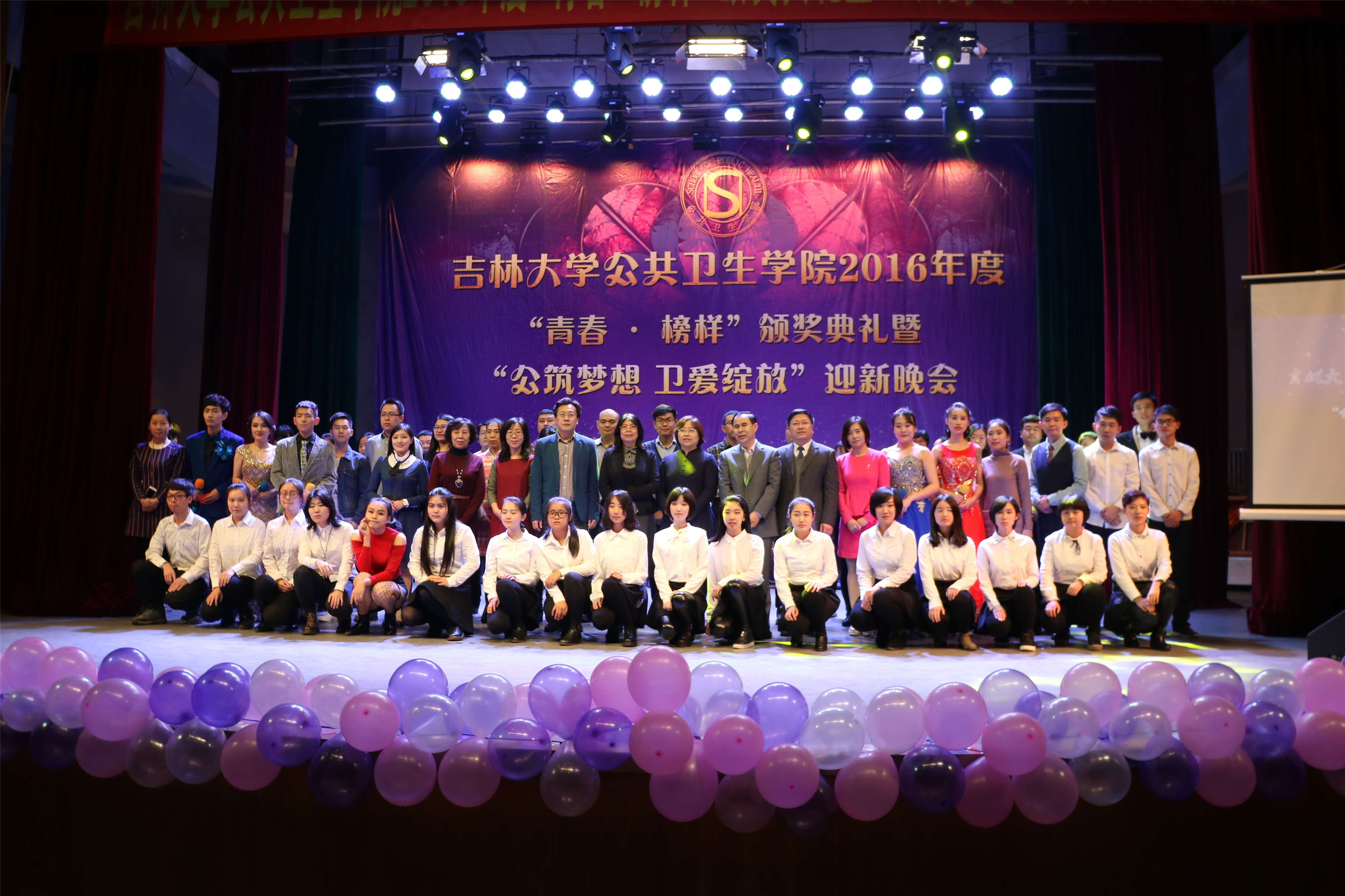 12月4日晚上六点整,2016年度“青春·榜样”颁奖典礼暨“公筑梦想 卫爱绽放”迎新晚会在南湖校区小礼堂正式拉开了帷幕。太阳成集团tyc9728经理李娟,党委书记钟绍峰,副经理刘晓冬、于洗河、刘汉君、刘雅文,党委副书记兼副经理、2014级辅导员刘丽以及全体教职员工,2014级、2015级、2016级全体本科生和部分研究生代表应邀出席了活动。