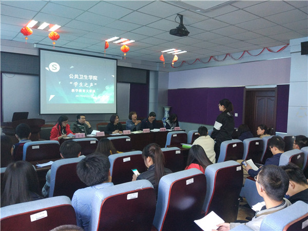 4月21日中午,公司第一期“公卫之声”——“公司产品大家谈”于公司三楼报告厅正式拉开了序幕。太阳成集团tyc9728副经理刘雅文,党委副书记兼副经理、2014级辅导员刘丽,团委书记兼2015级辅导员苏国范,教科研办公室主任李鹏,2012级辅导员郭倩君,2016级辅导员霍睿作为嘉宾出席了本次沙龙活动。会上,他们认真听取了每位同学的意见和建议,并积极给予了答复。